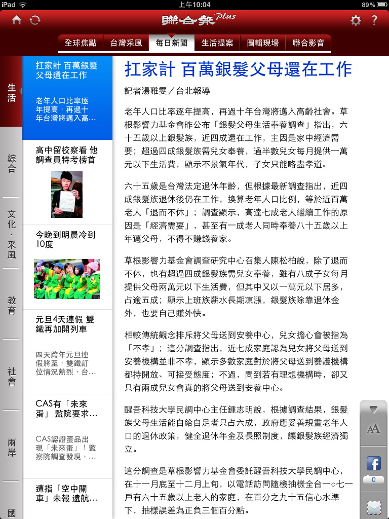 錢不夠用!近4成銀髮族還在拚經濟 |