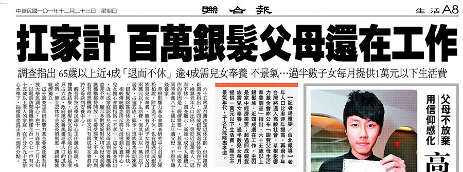 經濟需要 台灣95萬名銀髮族仍工作 |