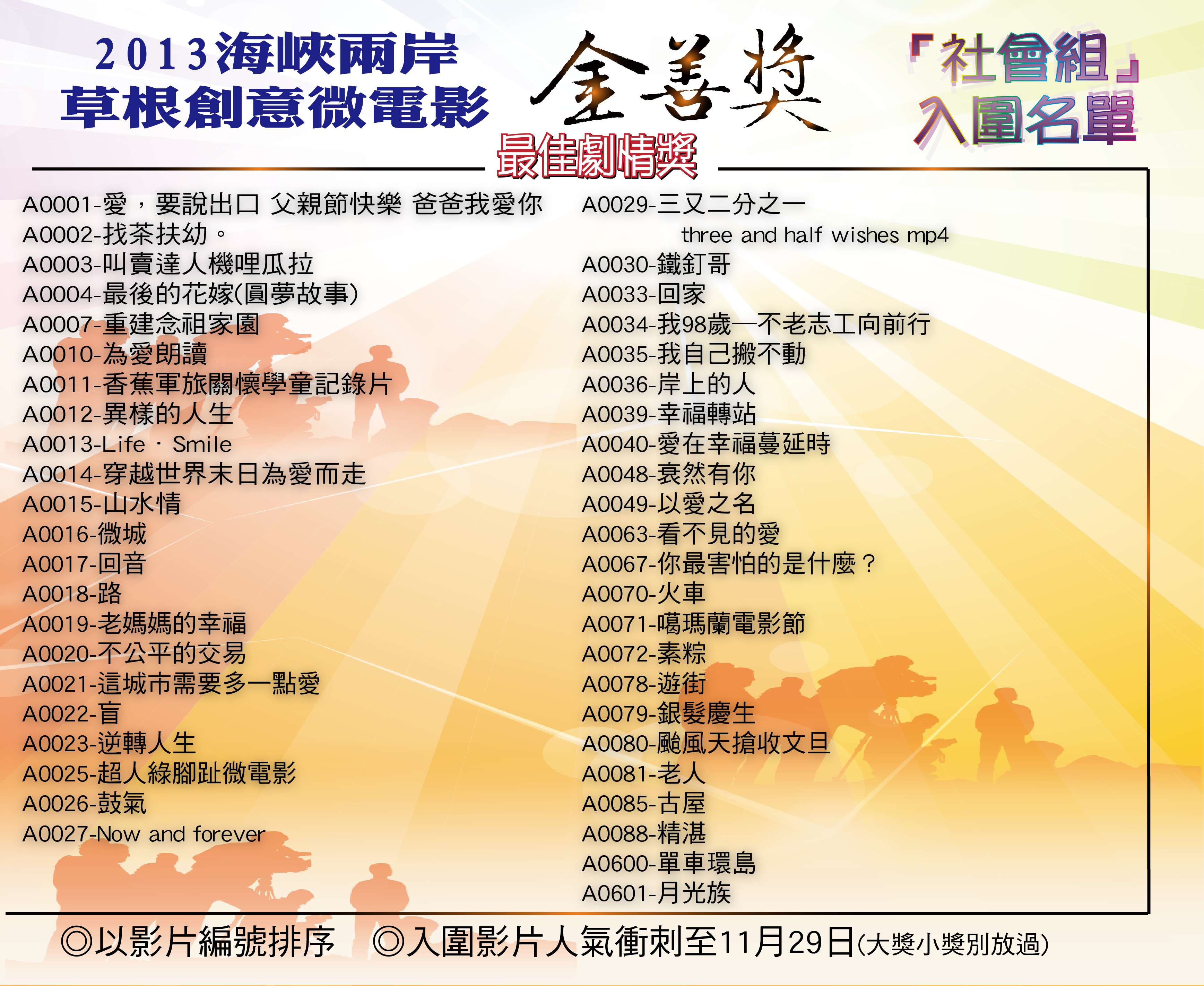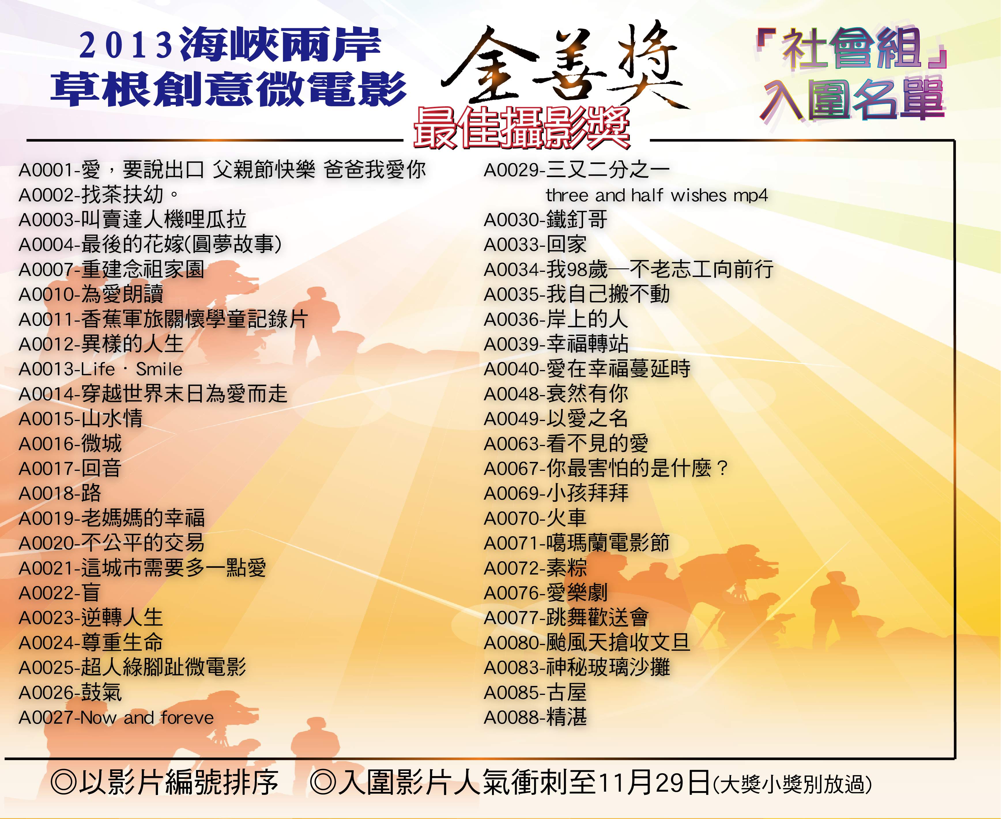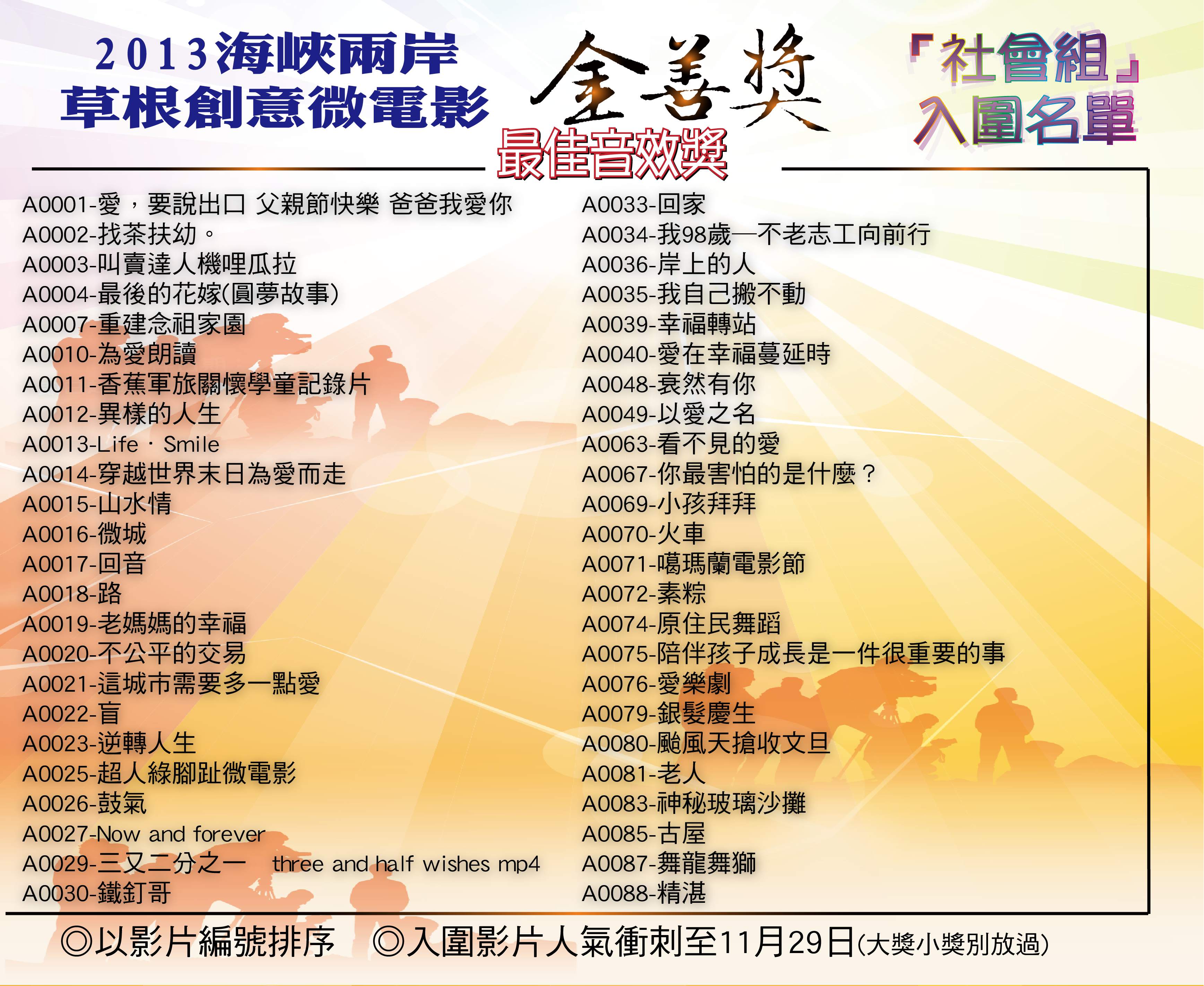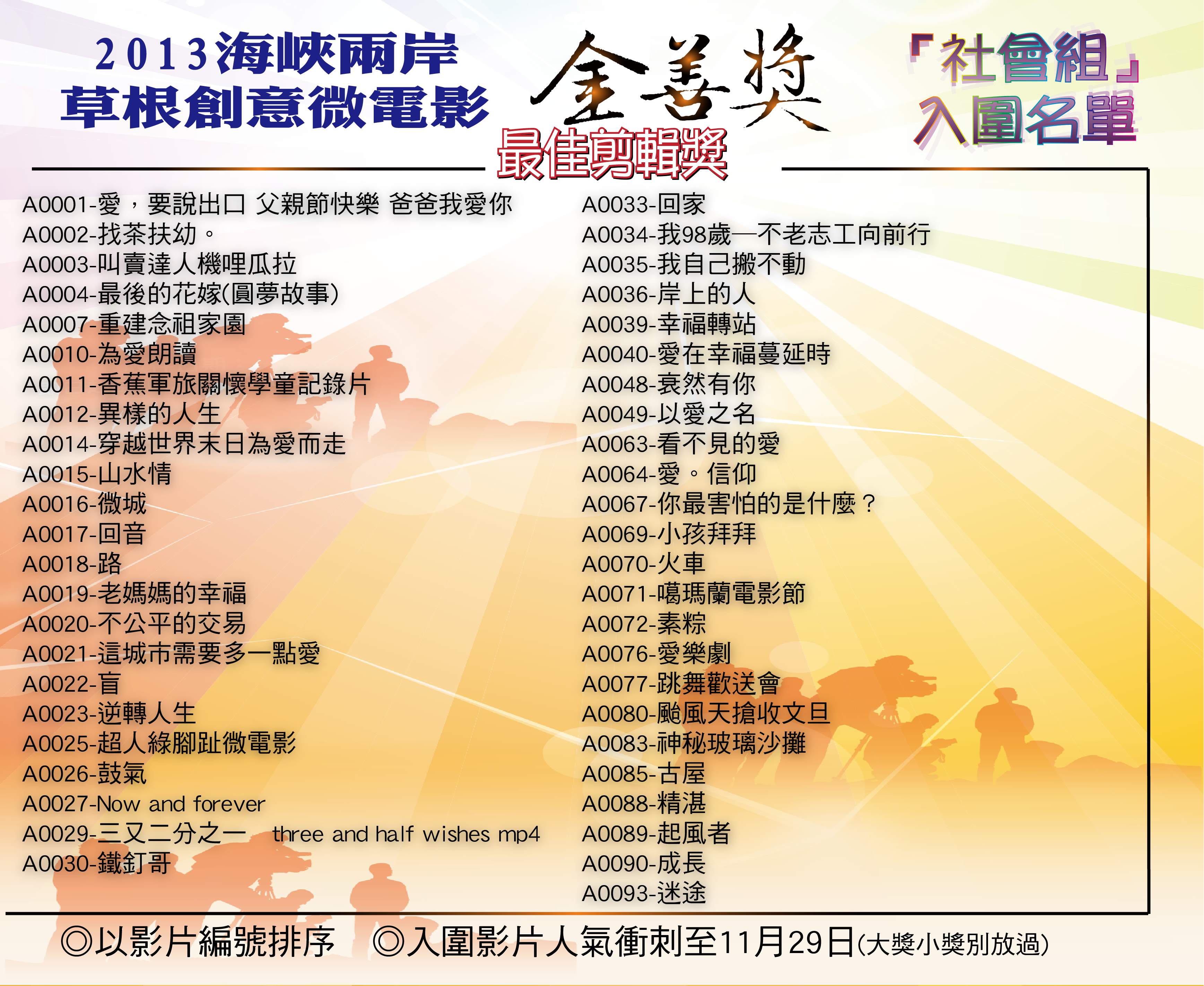 2013海峽兩岸草根創意微電影金善獎頒獎典禮新聞稿