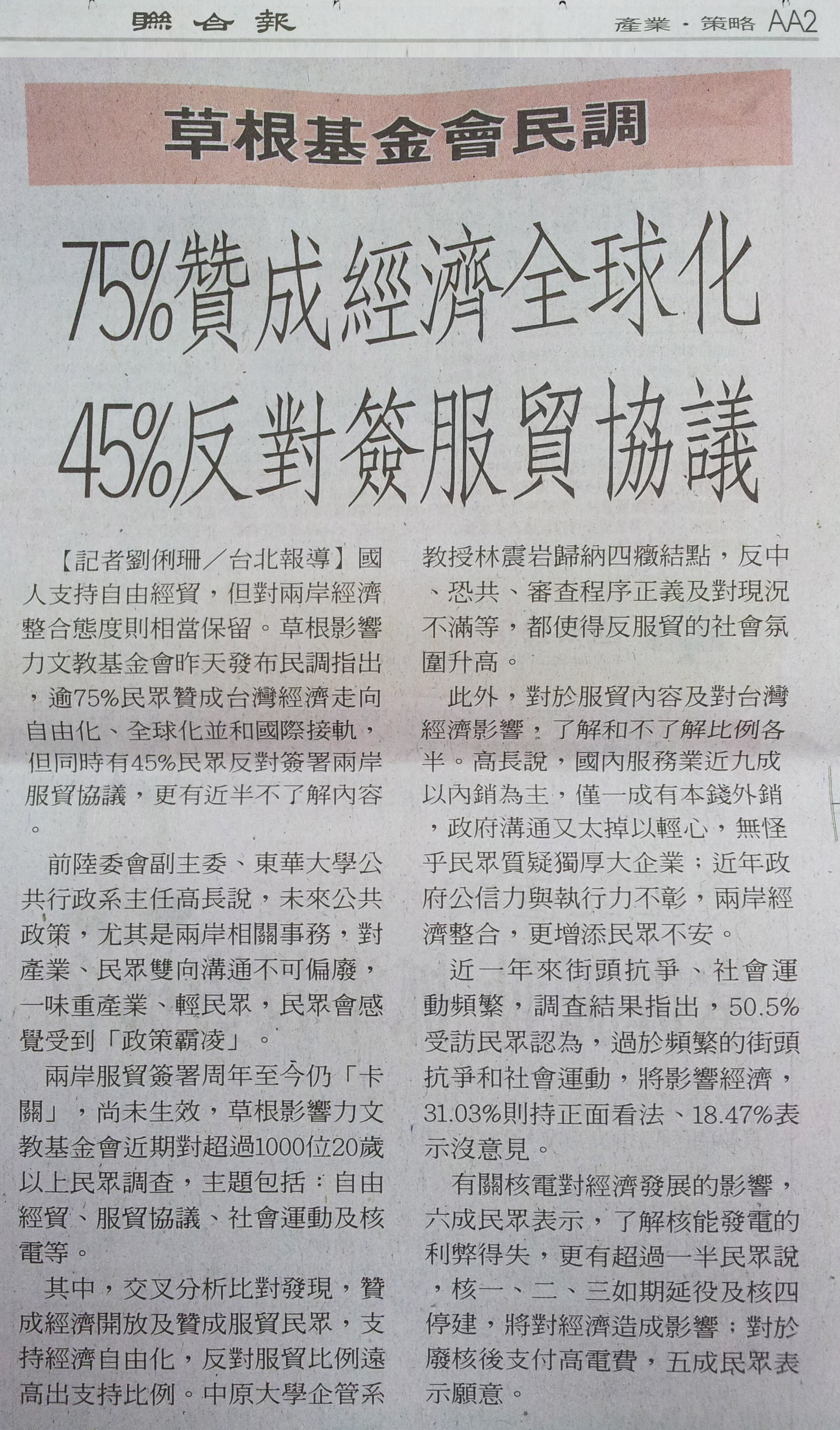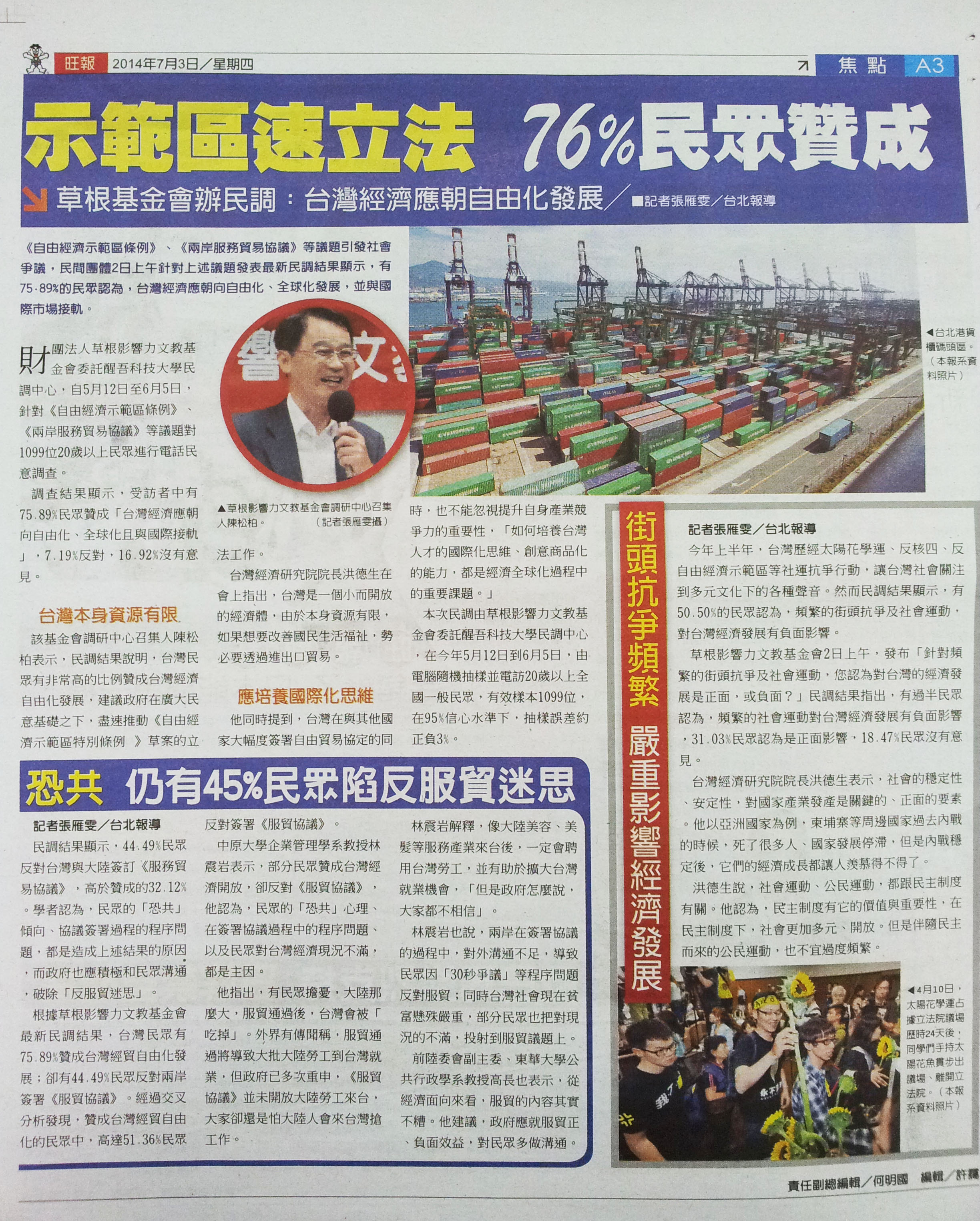 【記者會】20140702_「服貿/核電/自由經貿 最新民意記者會」民調發表會相關報導