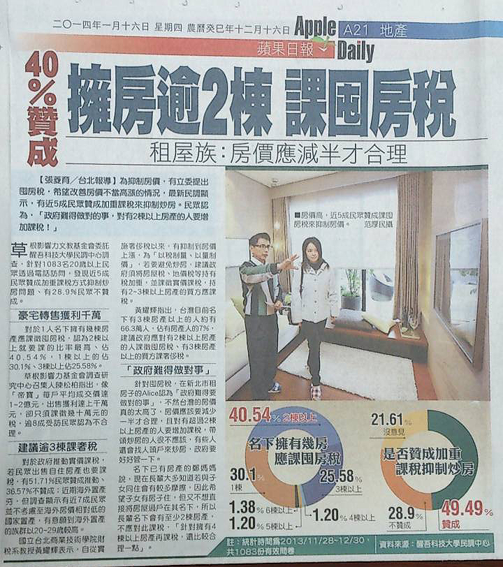 【Hinet 房地產新聞 轉 中廣 2014-01-15】