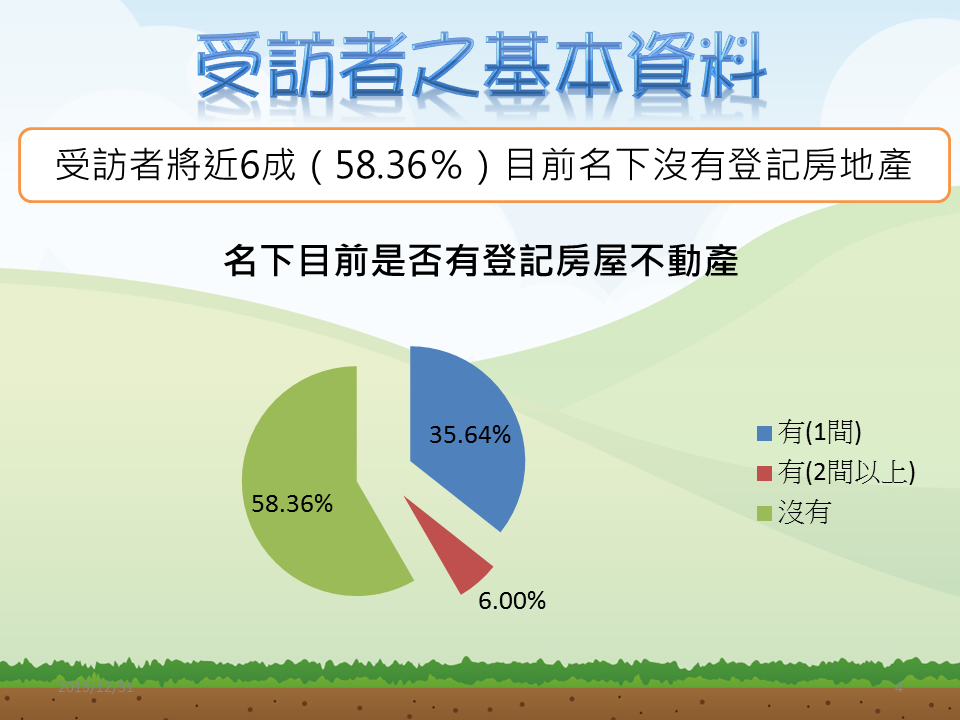醒吾科大副校長陳義文表示,台灣的房地產集中在少數人手中,調查中近6成的受訪者,名下沒有登記房地產。