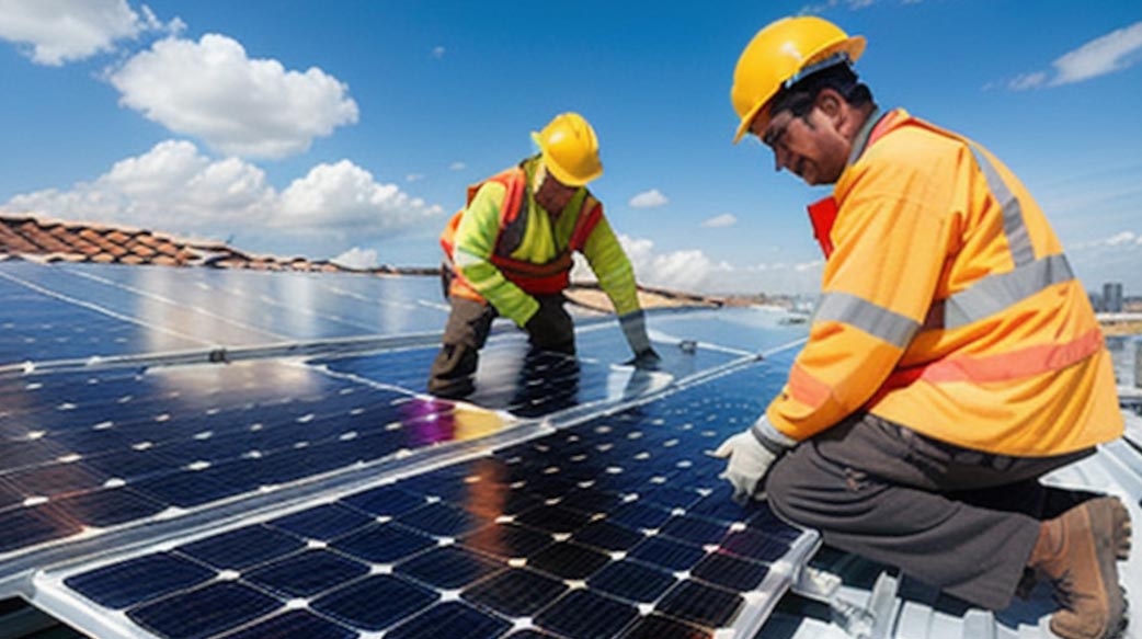 將太陽光直接轉變為能源的一種形式。透過『光電效應』(photovoltaic) 及『聚光太陽能熱發電系統』(又稱CSP), 太陽能可被應用於許多用途,。『光電效應』指直接將太陽光轉變為電力的過程, 而CSP指的是透過鏡子聚合特性驅使蒸汽渦輪發電系統產出更多電力。