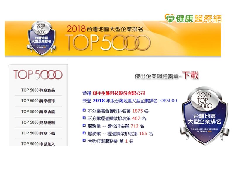 2018台灣頂尖企業TOP 5000名單揭曉,翔宇生醫科技於「生物技術服務業」摘下后冠,榮登第一名寶座,其中有台灣最美CEO之稱的翔宇生醫張麗綺功不可沒。