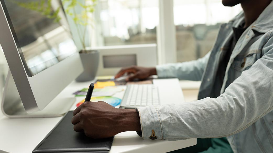 一個人 年輕的成年 男人 男性 黑色 年輕人 非洲種族 藝術家 業務 商人 休閒服裝 執行 關聯 佔用 職業 專業的 技能 創作的 專門知識 企業家 企業 公司 個性 辦公室 職場 辦公桌 坐 工作的 電腦 電子 鍵盤 重點 細心 智能 現代 在室內